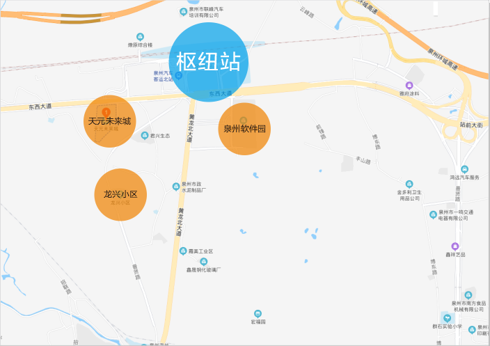 該項目毗鄰清源山風景名勝區(qū),距離泉州中心市區(qū)約10公里,距離泉州開元寺、清真寺、閩臺緣博物館、西湖公園、豐澤廣場等主要景點約5-10公里(10-15分鐘車程);周邊交通網(wǎng)絡完善,距離泉州高速公路出入口(泉州北)約2公里,城東-北峰快速通道15分鐘直達泉州市政府,面前東西大道和南北大道連接泉州晉江機場、南安市、安溪、永春德化等縣市;周邊環(huán)境優(yōu)越,擁有東側廣場、南側廣場、站前景觀廣場,綠化面積達5萬多平方米;一公里范圍圈內(nèi),有天元未來城、萬科、龍興小區(qū)等房產(chǎn)項目,有泉州軟件園、泉州正骨醫(yī)院、910醫(yī)院等,有在建的西華洋滯洪區(qū)園區(qū)(約8000畝)及其它配套項目等。