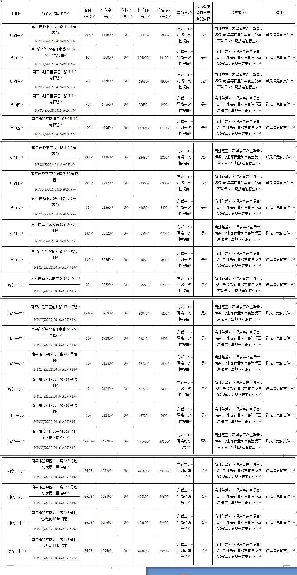 南平市延平區八一路417-1號,南平市延平區濱江中路651-6、651-7號,南平市延平區濱江中路651-5號,南平市延平區濱江中路651-4號等21處資產招租