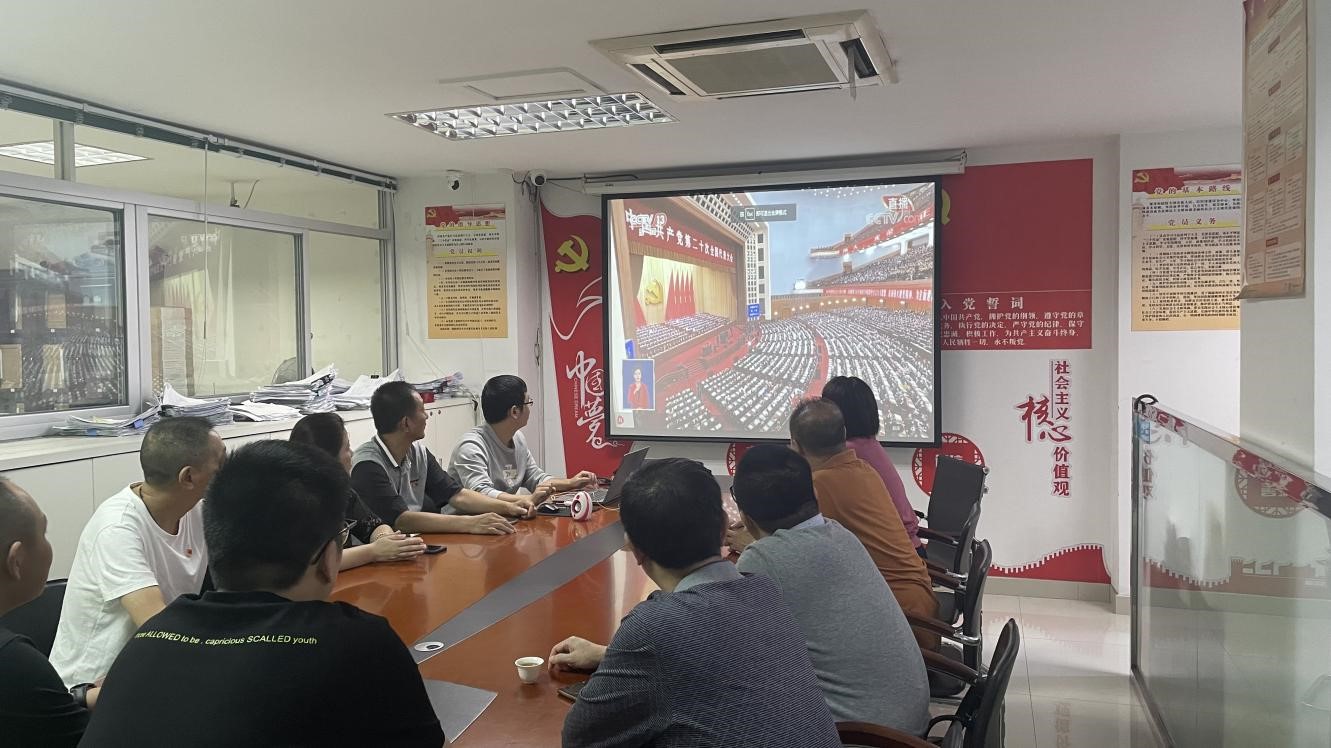 為深入學習貫徹黨的二十大精神,投資集團支部組織全體黨員實時收聽收看大會開幕直播盛況,認真學習領會習近平總書記在黨的二十大上的報告精神。投資集團支部在延黨員于10月16日上午9時30分在產權交易中心會議室統一觀看,未在延的黨員同志自行利用電視、電腦、手機等設備線上進行收聽收看,累計共14人觀看了直播,共14人轉發直播情況。